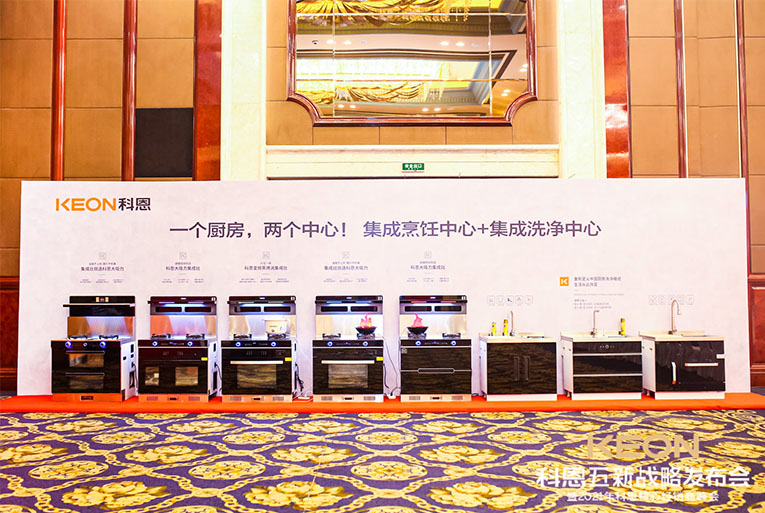 高端市場快速崛起,智能健康廚房成為大勢所趨的背景下,集成市場正迎來新的風口。多年來科恩電器品類經歷了不斷的創新與豐富,產品功能與品類得到了大幅度的提升,新品集成灶曝光,科恩電器成功搶先掌控了市場商機,進一步擴大了集成市場的影響力。智能語音上蒸下烤/左烤右蒸集成灶/純蒸集成灶/集成水槽等市場新品,在峰會現場齊齊亮相。