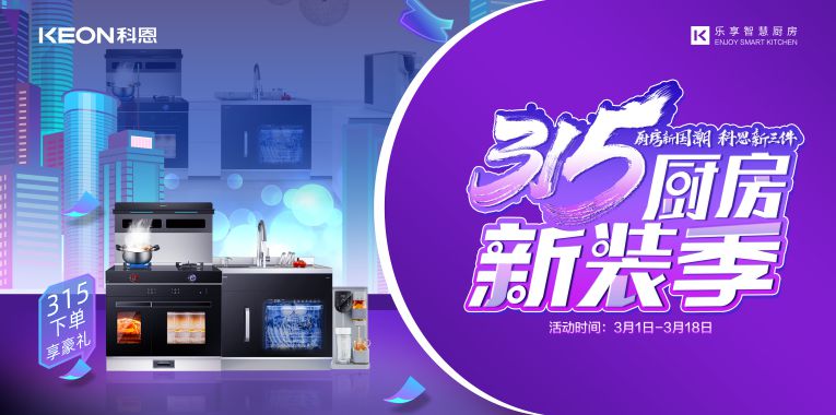 守品質,講誠信,集成灶十大品牌、廚電行業十大品牌科恩集成灶315廚房新裝季,鉅惠全國送上滿滿的誠意與服務,3月1日-3月18日,來科恩就對了!