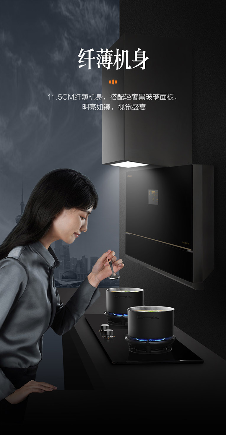 廚房環(huán)境要將就?絕不同意!高顏值的廚房離不開高性能的廚電搭配,集成灶十大品牌、廚電行業(yè)十大品牌科恩新一代大吸力煙機(jī)7350,大吸力,不跑煙!整機(jī)采用輕奢黑晶玻璃面板,11.5cm纖薄機(jī)身,搭配大寬屏柔光照明,烹飪視野更加開闊,無(wú)需低頭就能分辨調(diào)味料,盡情享受廚房的聚光燈。