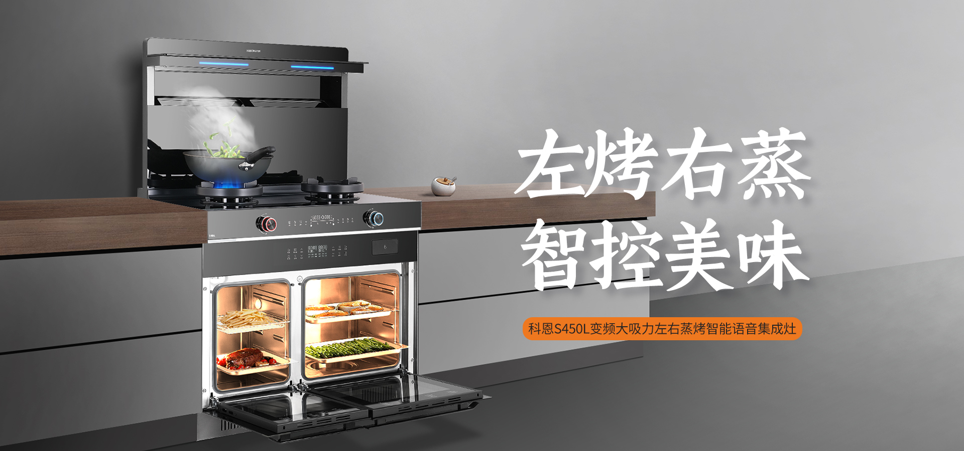 S450L搭載語音喚醒功能,只需開口就能控制集成灶,盡顯廚房黑科技。