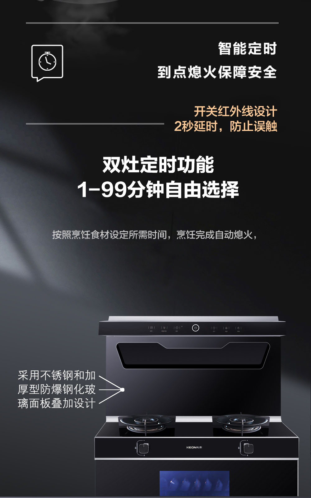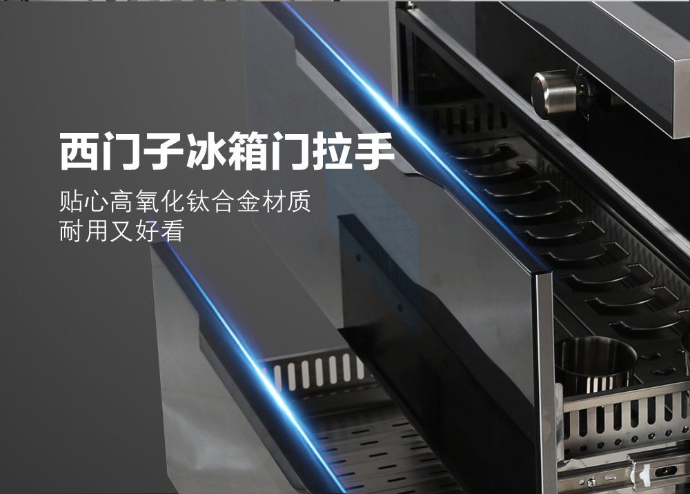 - 冷凝壁采用不銹鋼和加厚型防爆鋼化玻璃面板疊加設計,耐磨耐臟,不沾油好打理