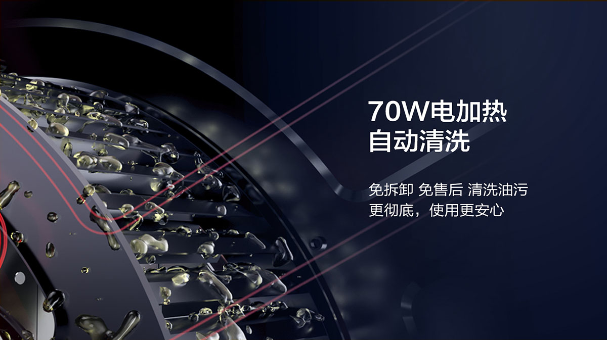 - 一鍵電熱自清洗,解放雙手,還原煙機澎湃動力,歷久彌新