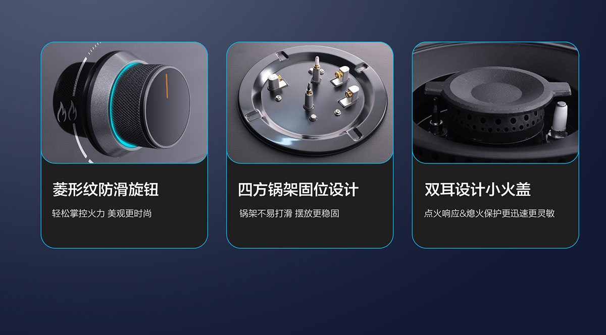 - 環抱式立體聚能環,防風聚熱,更有溢水保護